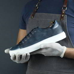 Astonishing pair of trainer sneakers, made of our square pattern embossed crust calf leather.